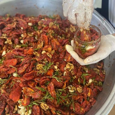 425 CC Cam Kavanozda Zeytinyağlı Cevizli Baharatlı Domates Kurusu Sos